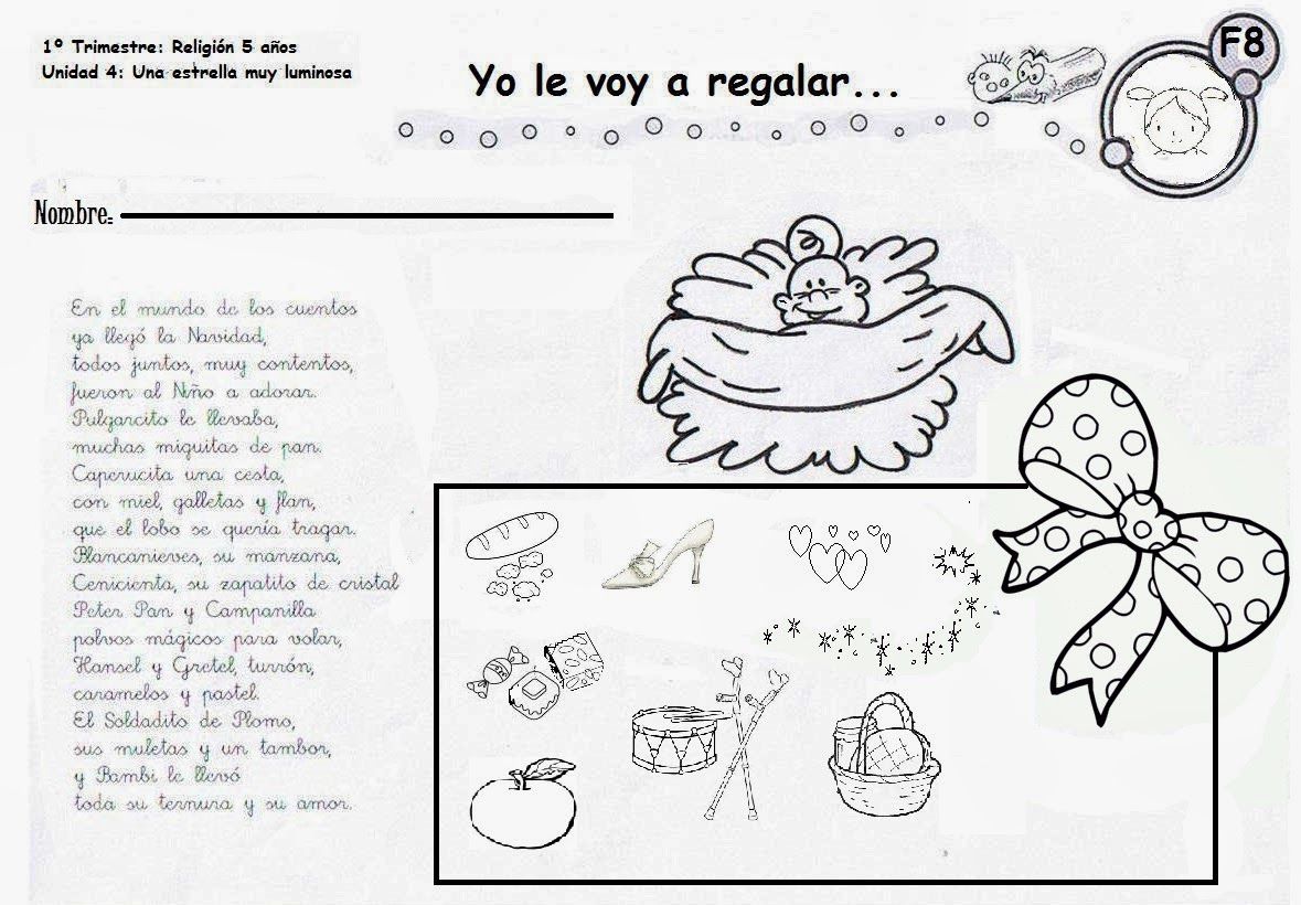 - Repasamos la poesía y vamos coloreando todos los regalos que recibe Jesús.