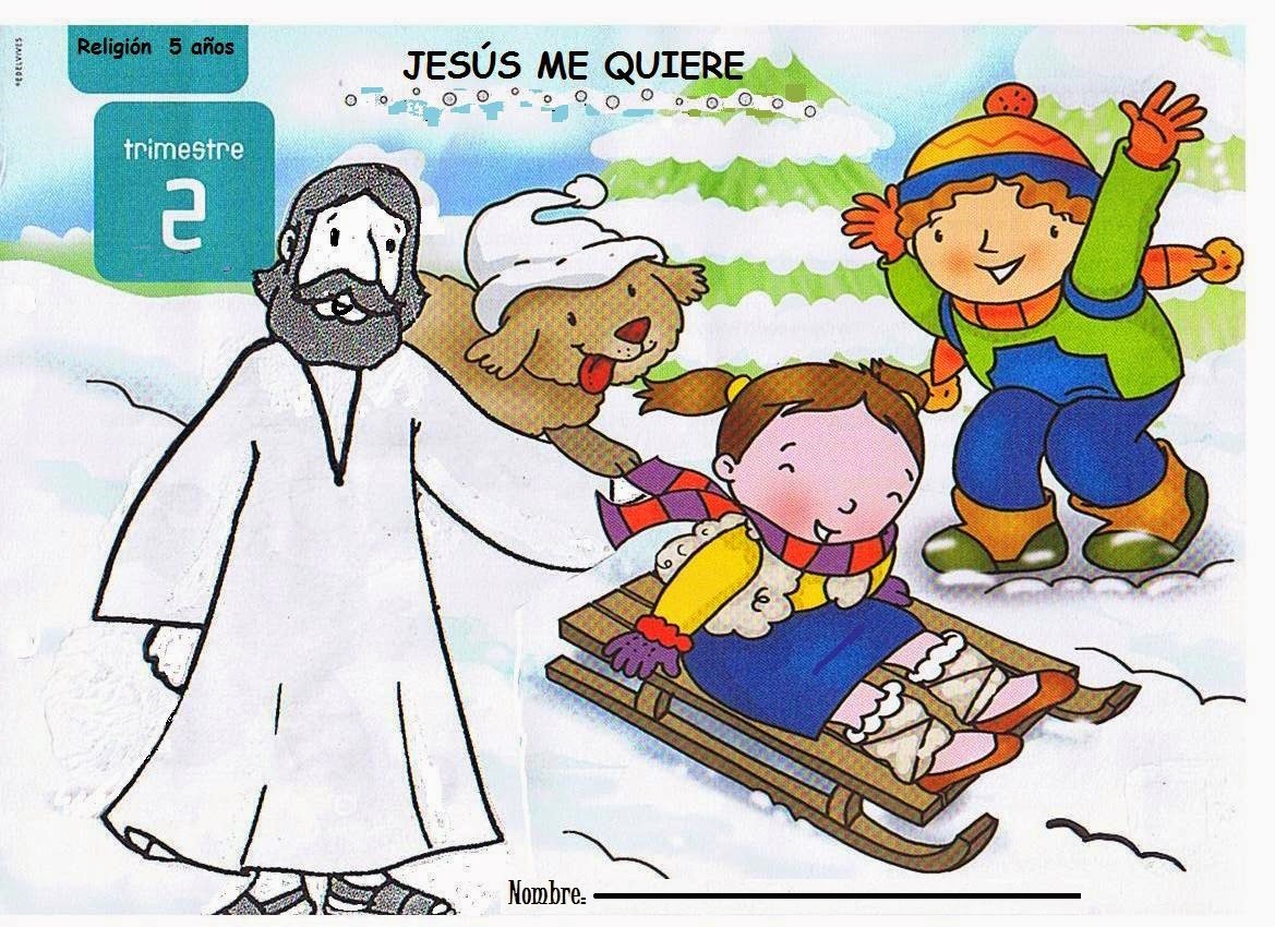 - Hacemos la ficha de la portada del 2º Trimestre: "Jesús me quiere" en la que decoran la túnica de Jesús y pondrán bolitas de papel imitando la nieve.
