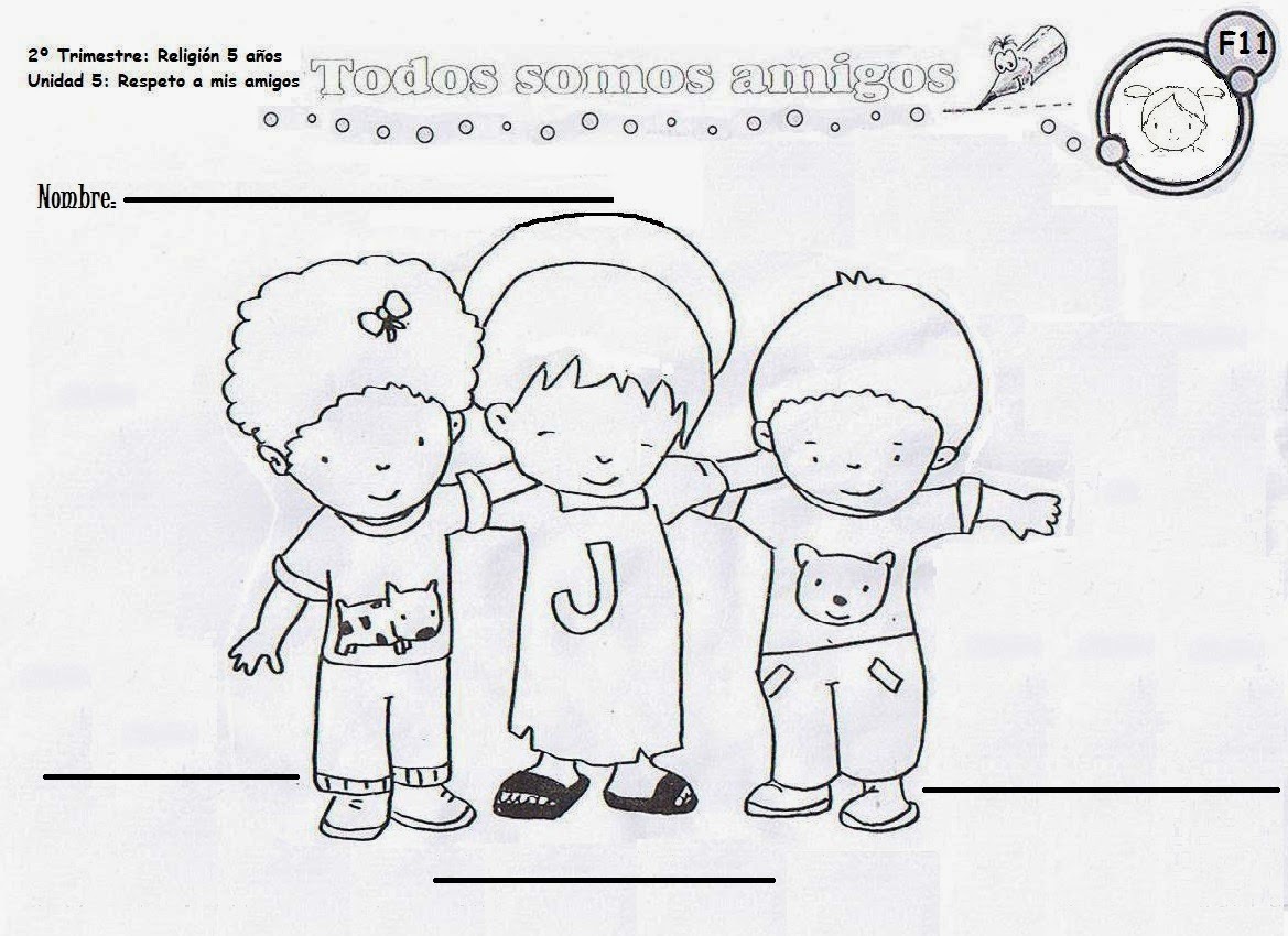 - Observamos la f11: "Todos somos amigos" identificando a Jesús al que colorean haciendo hincapié en que el es el mejor amigo.