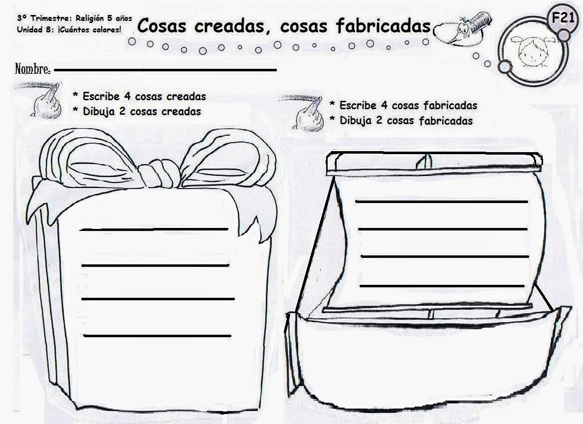 - Explicamos que las cosas que vienen de Dios son las creadas y que las que hacen los hombres son las fabricadas.