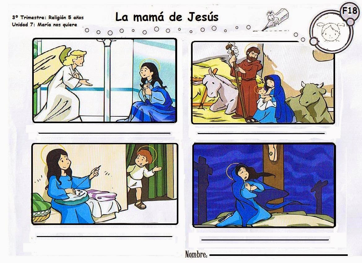 - Hacemos la f18: "La mamá de Jesús" en la que iremos observando cada imagen de María.
